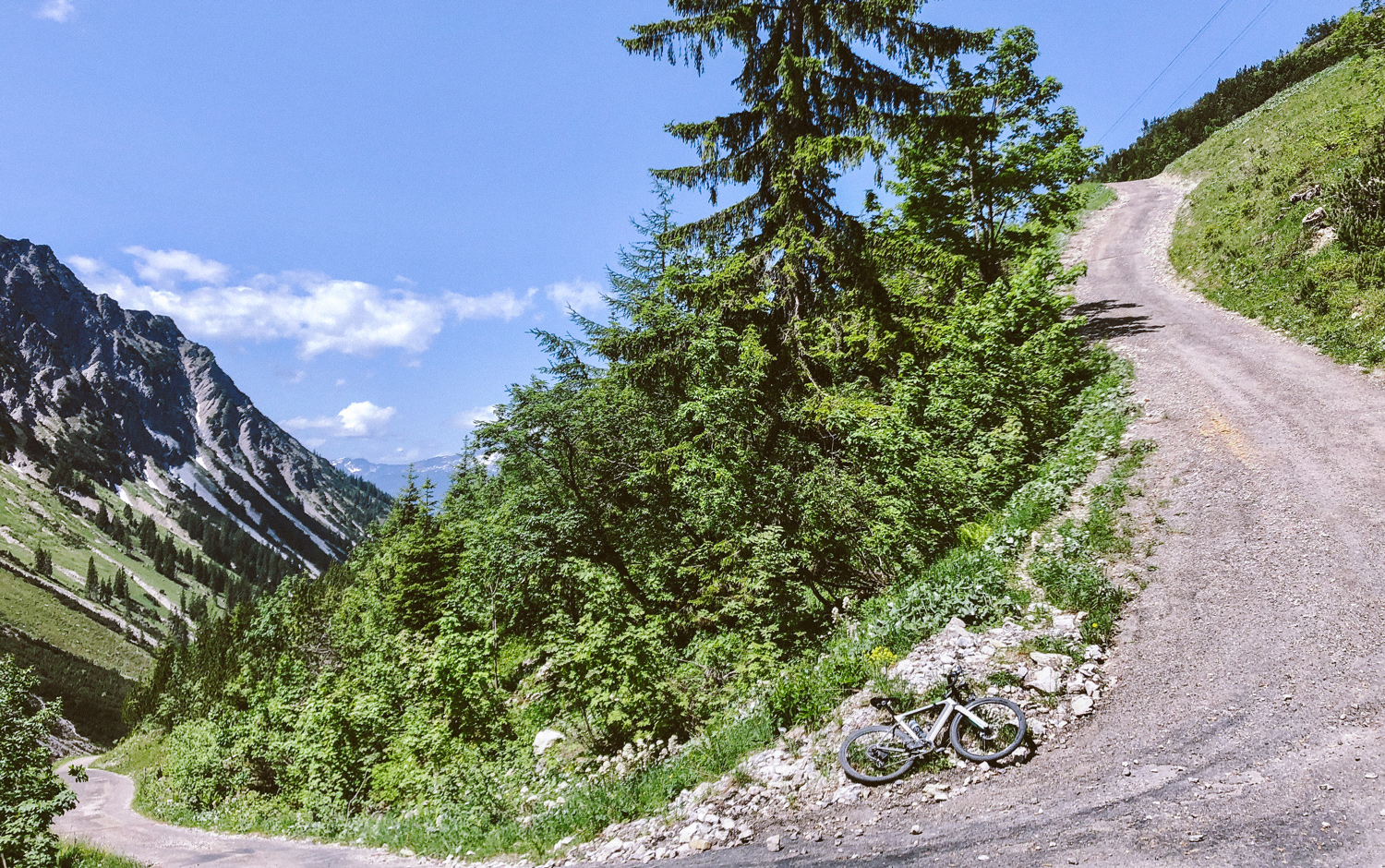 Das Jahr 2021 hat uns während der Pandemie ziemlich konkret gezeigt, wie schnell sich Pläne auflösen können und wie fragil unsere Vorstellungen von Beständigkeit sind. Ich war zu dieser Zeit viel mit meinem Van in den Alpen unterwegs, autark und reduziert auf das Wesentliche. Immer dabei: mein Gravelrad. An einem sonnigen Tag im Juni 2021 beschloss ich – heute ist der Tag, an dem ich die Route von Oberstdorf zum Nebelhorn versuchen werde.