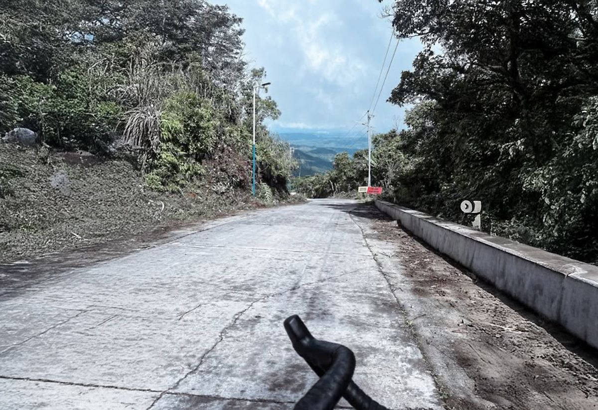 Um der Route noch meine persönliche Würze zu geben, hatte ich spontan entschieden, noch eine weitere Schwierigkeit einzubauen, bevor mich die Route im Downhill nach Balamban führt. Die Auffahrt zum Mt. Manunggal. Wer denkt, der TCH sei steil, wird hier eines Besseren belehrt. Der Weg zum Gipfel, der auf über 1.000 Metern liegt, ist kein Radweg – es ist eine Aneinanderreihung von Betonrampen, die die 20%-Marke teils deutlich überschreiten.